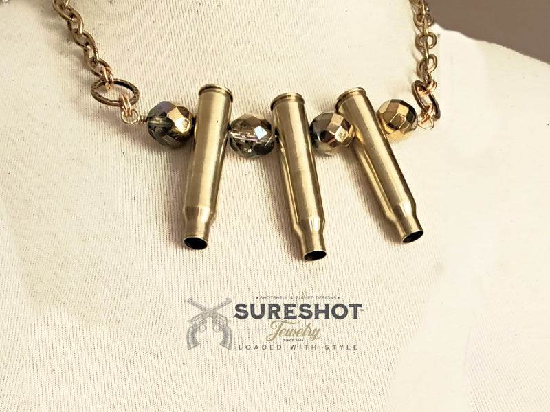 Triple .223 Beaded Antique Gold Bullet Necklace